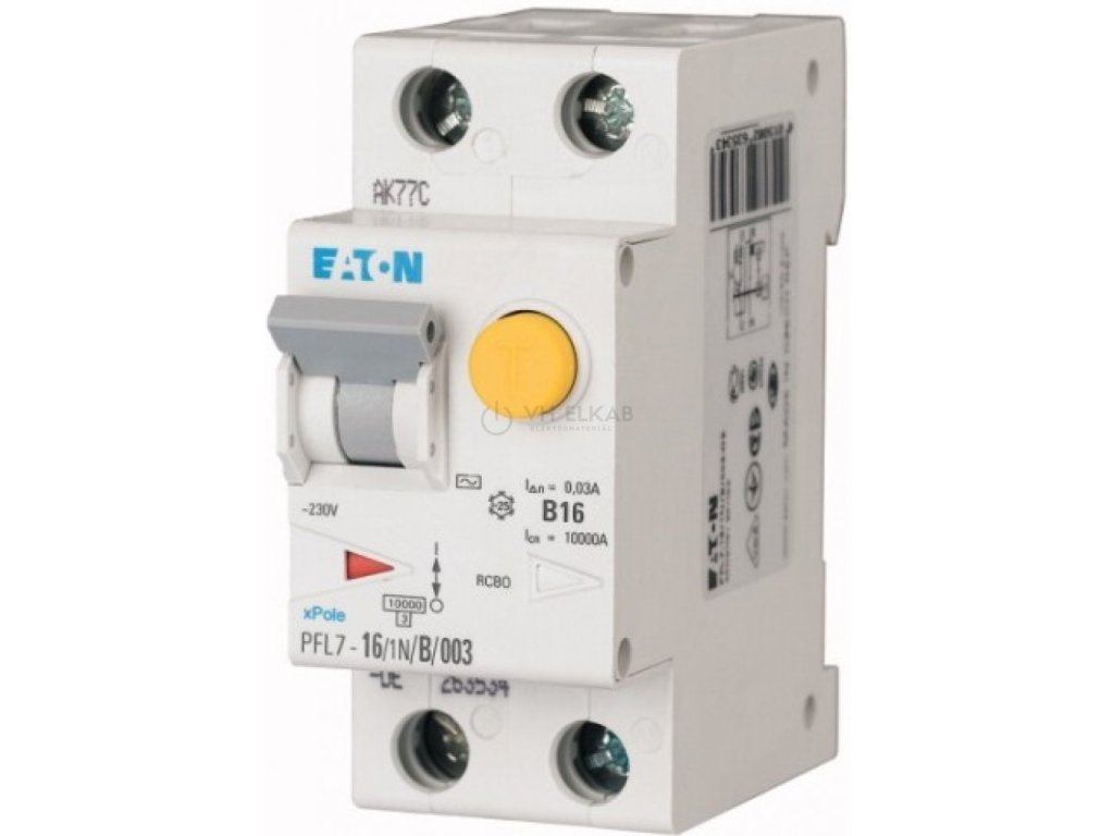Tento proudový chránič s jističem PFL7-16/1N/B/003-A (263535) typ A od výrobce Eaton kombinuje jistič s proudovým chráničem, který chrání před přetížením, zkraty a únikem proudu. Tento přístroj je dimenzován na jmenovitý proud 16 A, reziduální proud 30 mA a zkratovou odolnost 10 kA. Také je vybaven testovací funkcí, která zajišťuje kontrolu funkčnosti tohoto zařízení. Proudový chránič s jističem typu A reaguje na střídavý i stejnosměrný reziduální proud, díky čemuž je vhodný pro moderní zásuvkové a světelné obvody s elektronickými zařízeními.