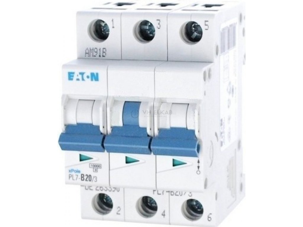 Třífázový jistič PL7-B20/3 (263390) od výrobce Eaton poskytuje spolehlivou ochranu elektrických obvodů před přetížením a zkratem. Je vybaven charakteristikou B, která zajišťuje vypnutí při 3–5násobku jmenovitého proudu, což ho činí vhodným pro různé typy aplikací v domovních i komerčních instalacích. Tento jistič s jmenovitým proudem 20 A, napětím 400V AC a zkratovou odolností 10 kA je určen pro montáž na DIN lištu (šířka modulu 52,5 mm). Inovované provedení jističů PL7 se zámečkem plně vyhovuje připojovacím podmínkám distribučních společností ČEZ, E.ON a PRE, a je tak ideální volbou pro použití jako hlavní jistič před elektroměrem. Díky tomu je vhodný jak pro bytové, tak i průmyslové aplikace. Splňuje požadavky normy IEC/EN 60898-1 a je navržen pro provoz v teplotním rozmezí od -25 °C do +55 °C.