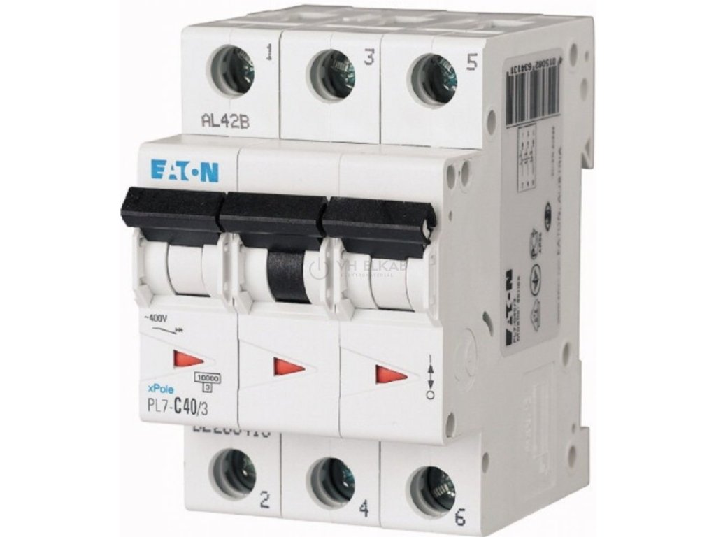 Třífázový jistič PL7-C40/3 (263413) od výrobce Eaton poskytuje spolehlivou ochranu elektrických obvodů před přetížením a zkratem. Je vybaven charakteristikou C, která zajišťuje vypnutí při 5-10násobku jmenovitého proudu, což ho činí vhodným pro různé typy aplikací v domovních i komerčních instalacích. Tento jistič s jmenovitým proudem 40 A, napětím 400V AC a zkratovou odolností 10 kA je určen pro montáž na DIN lištu (šířka modulu 52,5 mm). Inovované provedení jističů PL7 se zámečkem plně vyhovuje připojovacím podmínkám distribučních společností ČEZ, E.ON a PRE, a je tak ideální volbou pro použití jako hlavní jistič před elektroměrem. Díky tomu je vhodný jak pro bytové, tak i průmyslové aplikace. Splňuje požadavky normy IEC/EN 60898-1 a je navržen pro provoz v teplotním rozmezí od -25 °C do +55 °C.