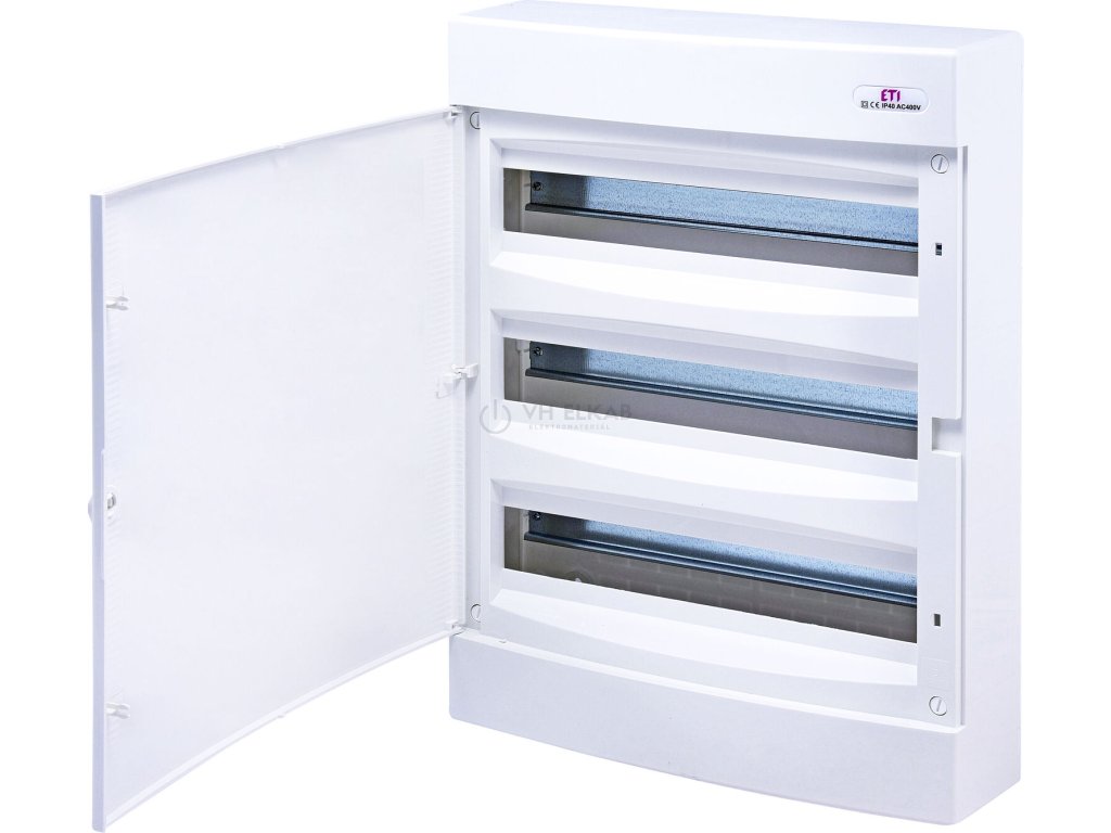 Rozvaděč na omítku ETI ECT 3x18PO, 54 mod. 3 řady, IP40, plná dvířka plastDoplňkové parametry